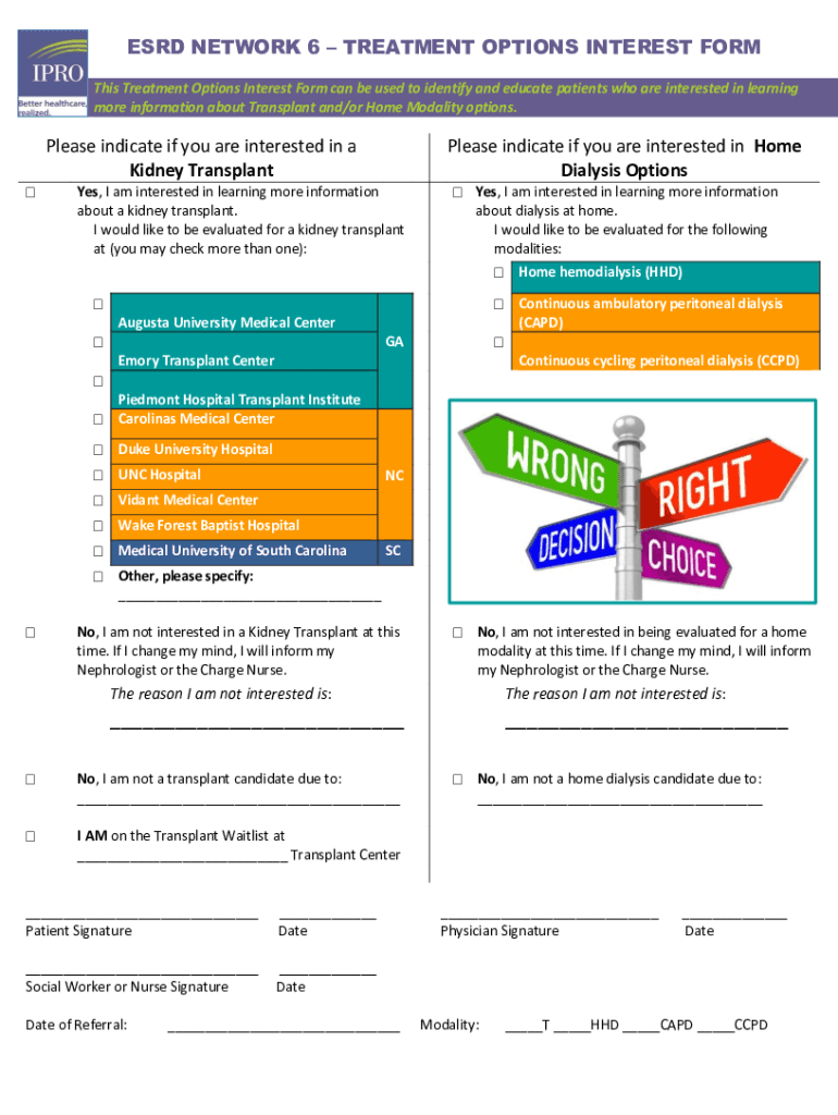ESD NETWORK 6 TREATMENT OPTIONS INTEREST FORM This Treatment Options Interest Form can be used to identify and educate patients who are interested in learning more information about Transplant and/or