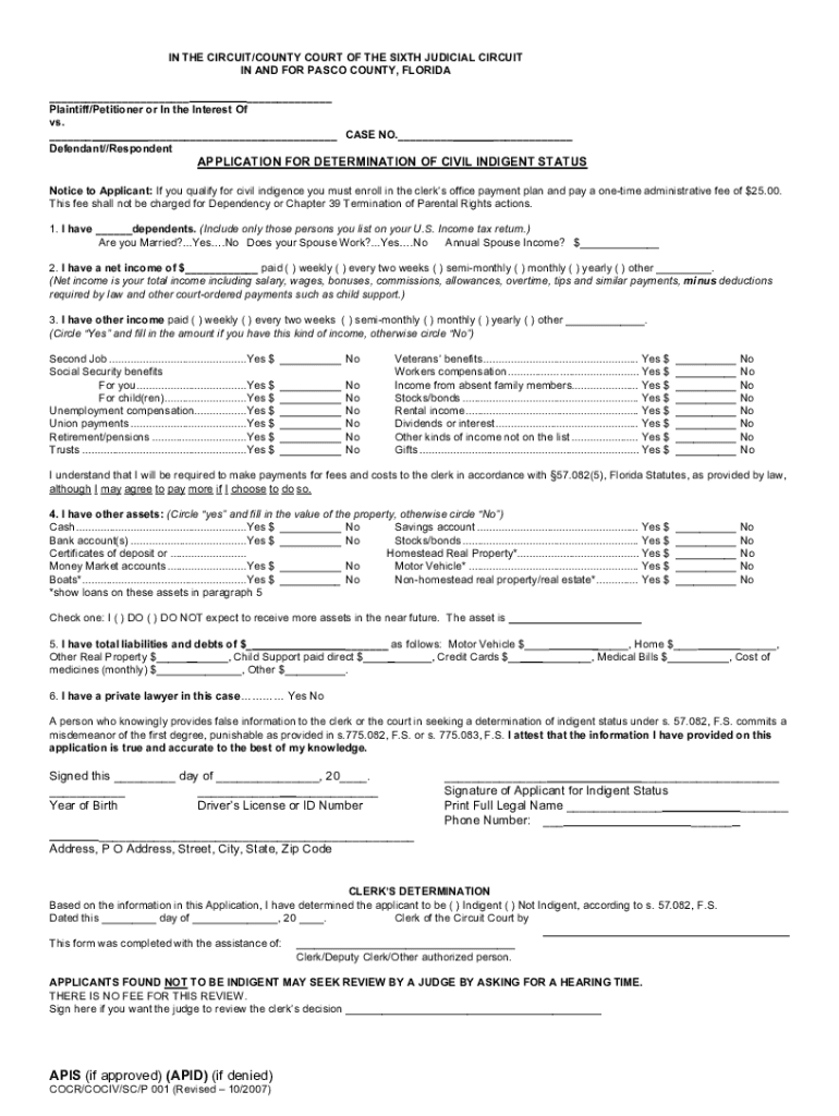 Get the free Application for Indigence