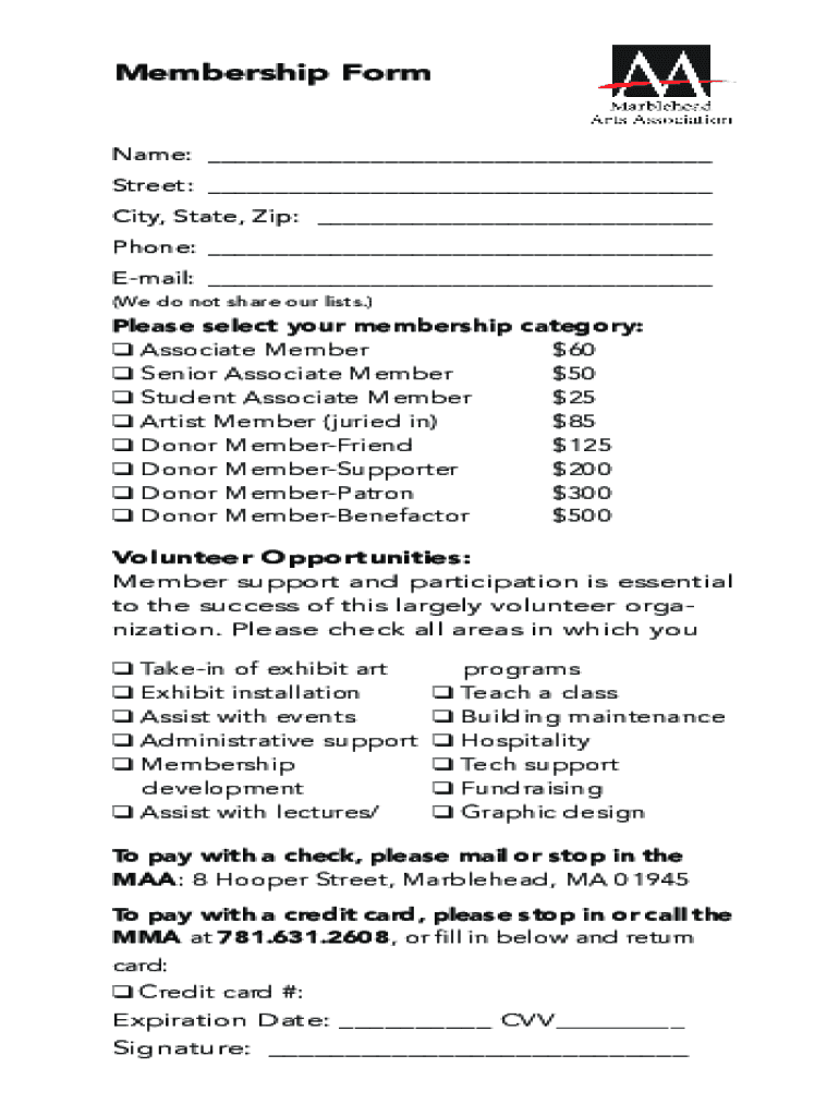 Membership Form Name: Street: City, State, Zip: Phone: Email: (We do not share our lists.) Please select your membership category: Associate Member$60 Senior Associate Member$50 Student Associate