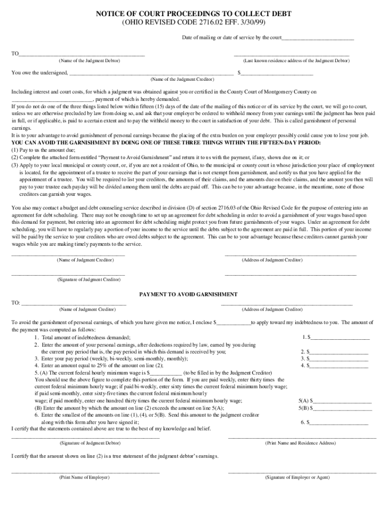 Get the free NOTICE OF COURT PROCEEDINGS TO COLLECT DEBT (OHIO REVISED ...