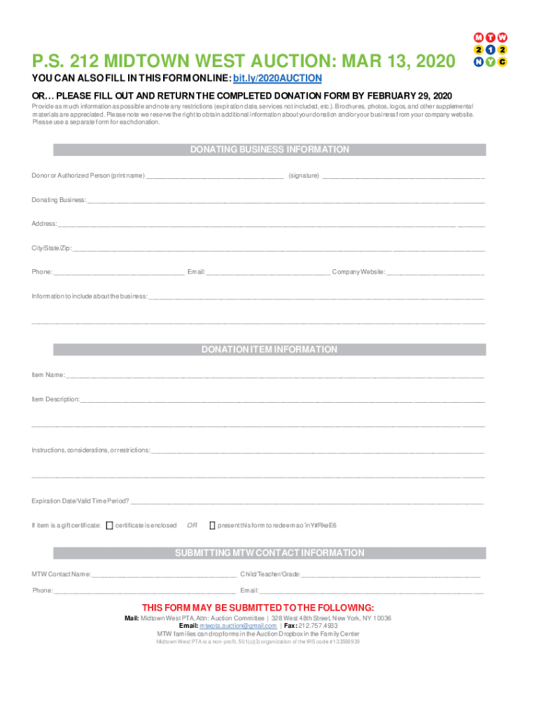 YOU CAN ALSO FILL IN THIS FORM ONLINE: bit.ly/2020AUCTION