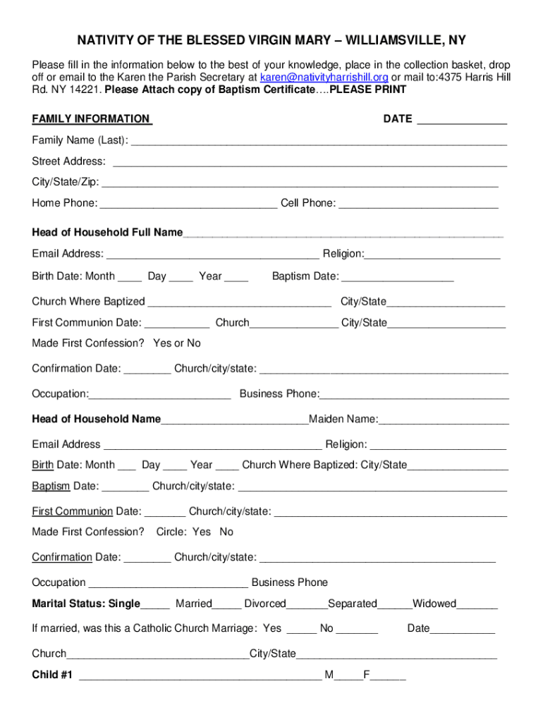NATIVITY OF THE BLESSED VIRGIN MARY WILLIAMSVILLE, NY Please fill in the information below to the best of your knowledge, place in the collection basket, drop off or email to the Karen the Parish