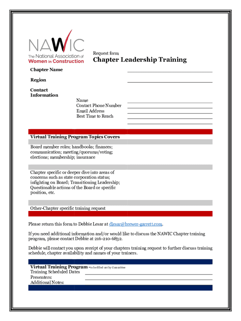 Get the free nawic chapter leadershiptraining form - pdf fillable.pdf
