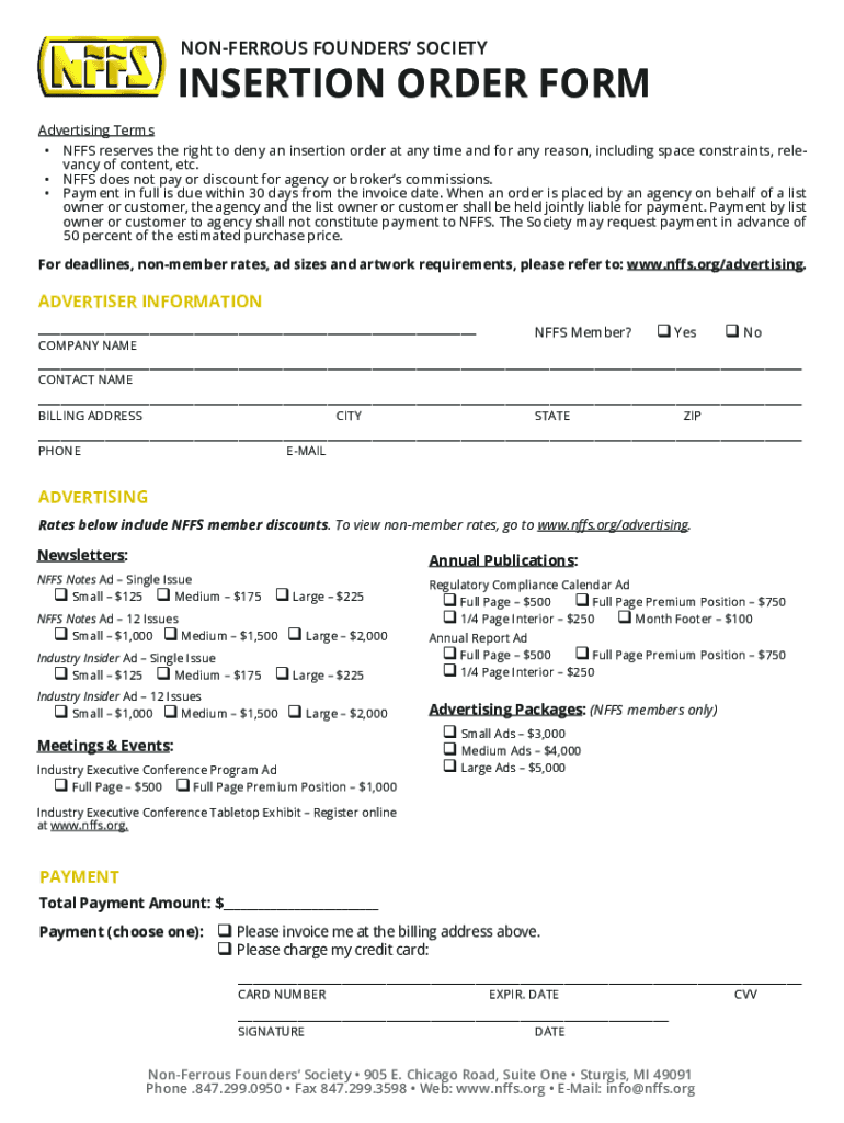 NONFERROUS FOUNDERS SOCIETYINSERTION ORDER FORM
