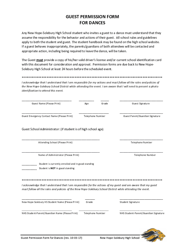 Get the free GUEST PERMISSION FORM FOR DANCES - New Hope-Solebury Middle ...