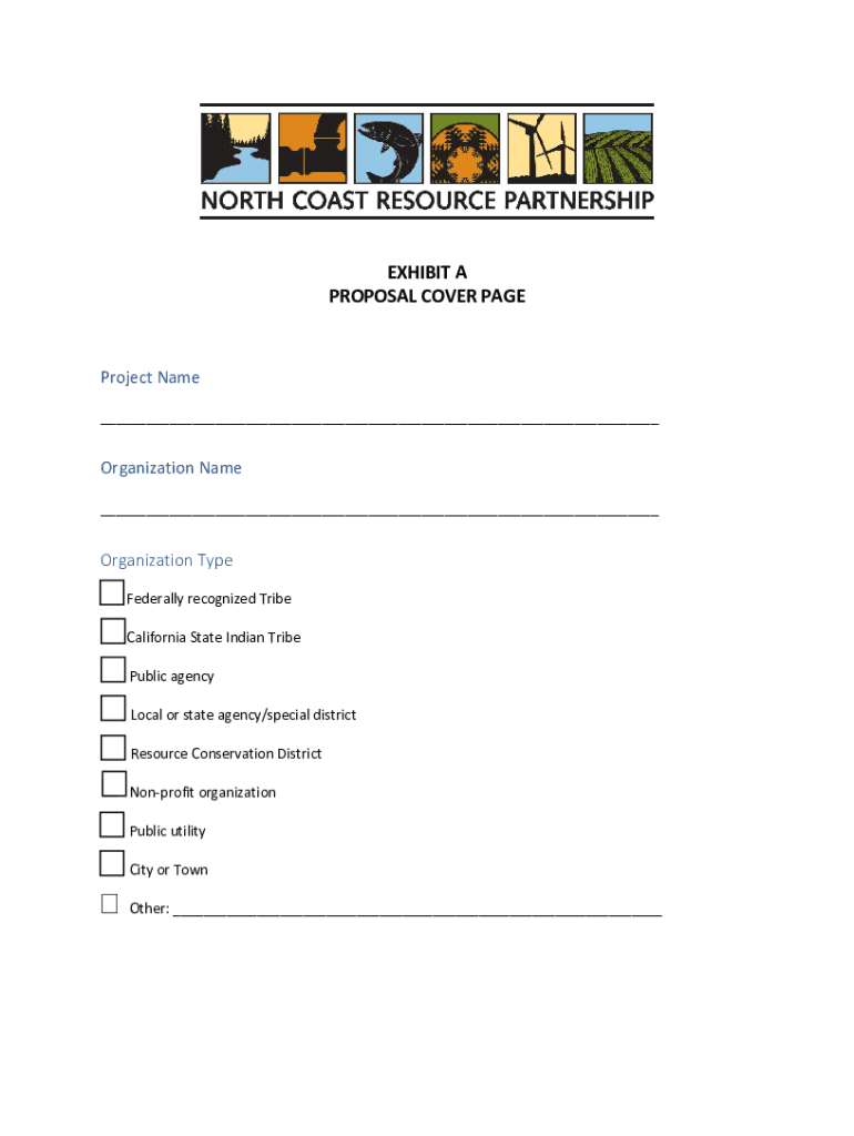 EXHIBIT PROPOSALCOVERPAGE Projectile Organizational OrganizationTypeFederallyrecognizedTribe CaliforniaStateIndianTribe Public agency Localorstateagency/special district ResourceConservationDistrict