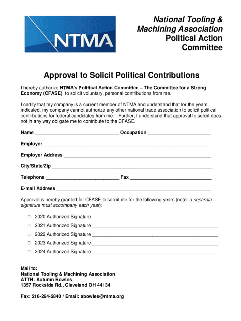 National Tooling & Machining Association Political Action Committee Approval to Solicit Political Contributions I hereby authorize Names Political Action Committee The Committee for a Strong Economy