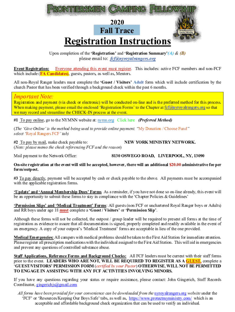 2020Fall Preregistration Instructions Upon completion of the Registration and Registration Summary(A) & (B)please email to: FCC nyroyalrangers. Prevent Registration: Everyone attending this event