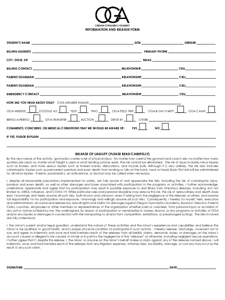 INFORMATION AND RELEASE FORMSTUDENTS NAMEDOBBILLING ADDRESSGENDER