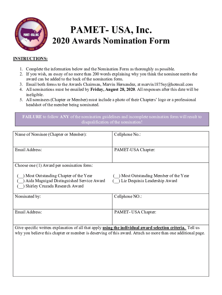2020 Awards Nomination Form