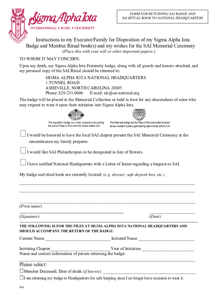 Get the free SIGMA ALPHA IOTA BADGE DISPOSTION FORM - sai-national.org