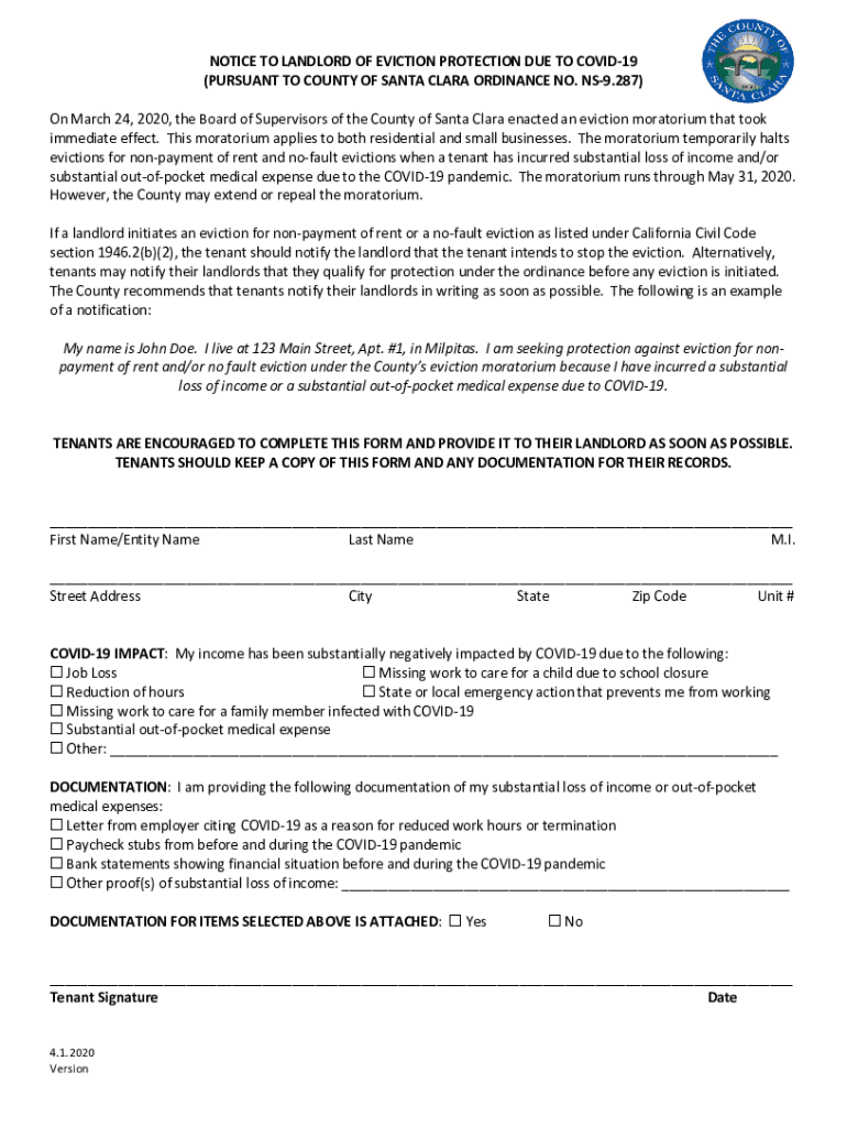 Get the free NOTICE TO LANDLORD OF EVICTION PROTECTION DUE TO COVID-19