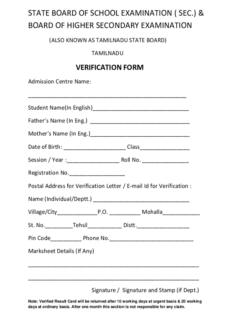 Get the free VERIFICATION FORM - Tamilnadu State Board