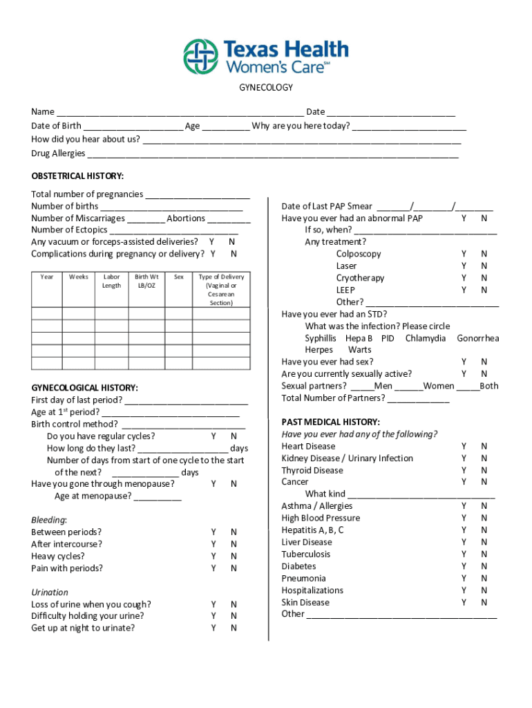 Patients visiting an OB GYN doctor are required to fill out the OB GYN history form.