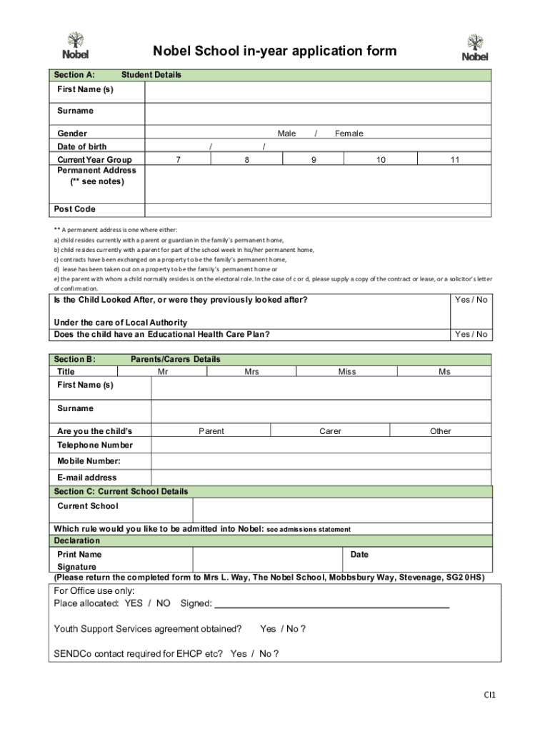 How to fill out nobel school application formdocx
