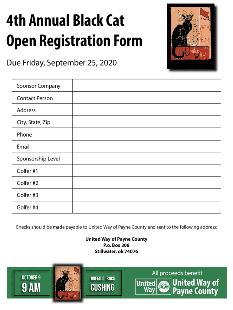 October 9Buffalo Rock9 amCushingEvent Sponsor $4,000Platinum Sponsor $2,000Premium Hole Sponsor $750Golf for 8, Headlining Event Sponsorship Recognition, Name on Welcome BannerGolf for 4 and Event