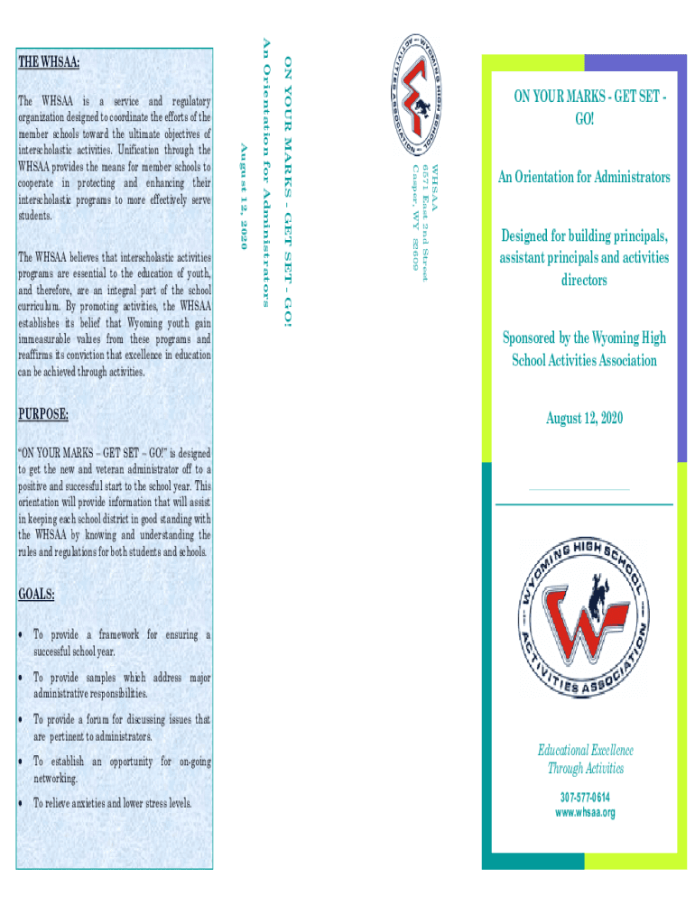 ON YOUR MARKS GET SET GO! WHS AA 6571 East 2nd Street Casper, WY 82609PURPOSE:ON YOUR MARKS GET SET GO! The WHS AA believes that interscholastic activities programs are essential to the education