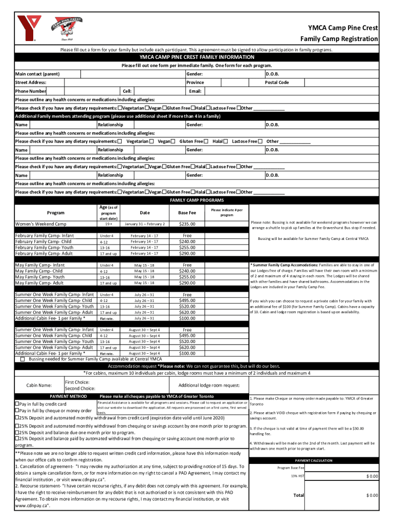 Fill out your ymca camp pine crest online with pdfFiller!