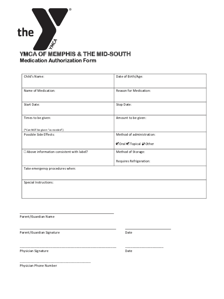 Get the free YMCA OF MEMPHIS & THE MID-SOUTH Medication Authorization Form