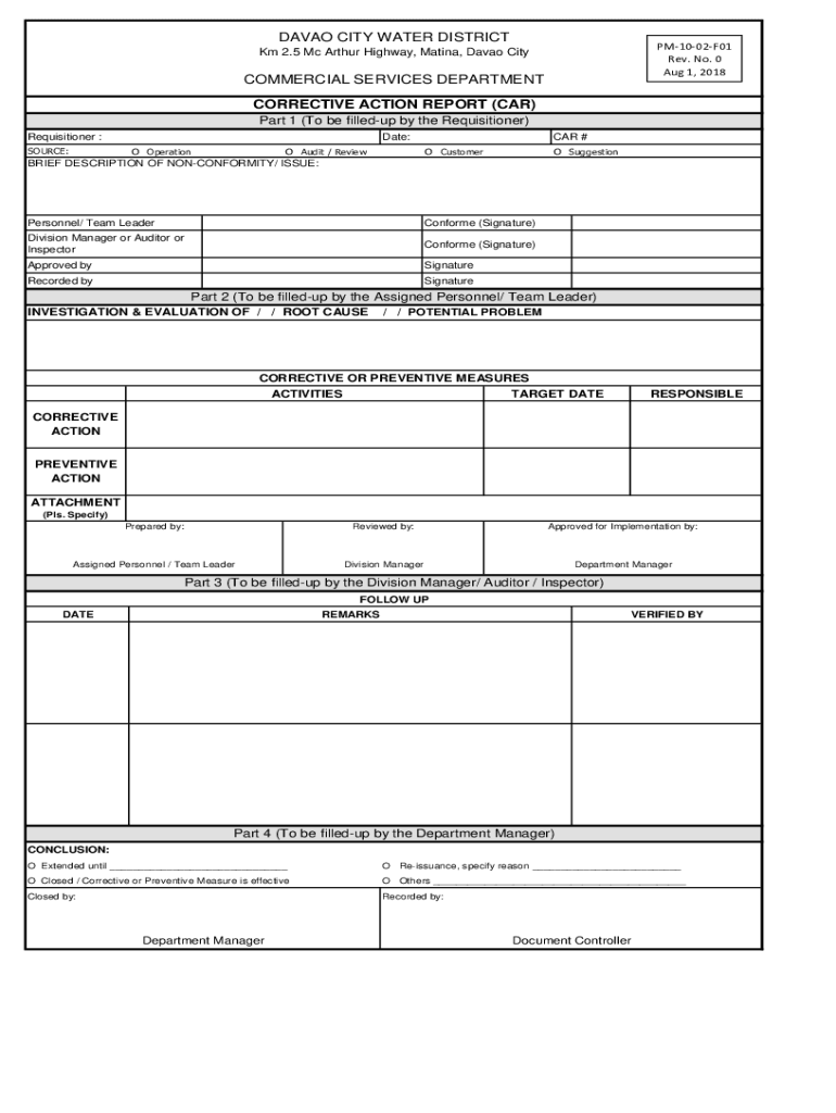 CORRECTIVE ACTION REPORT (CAR)