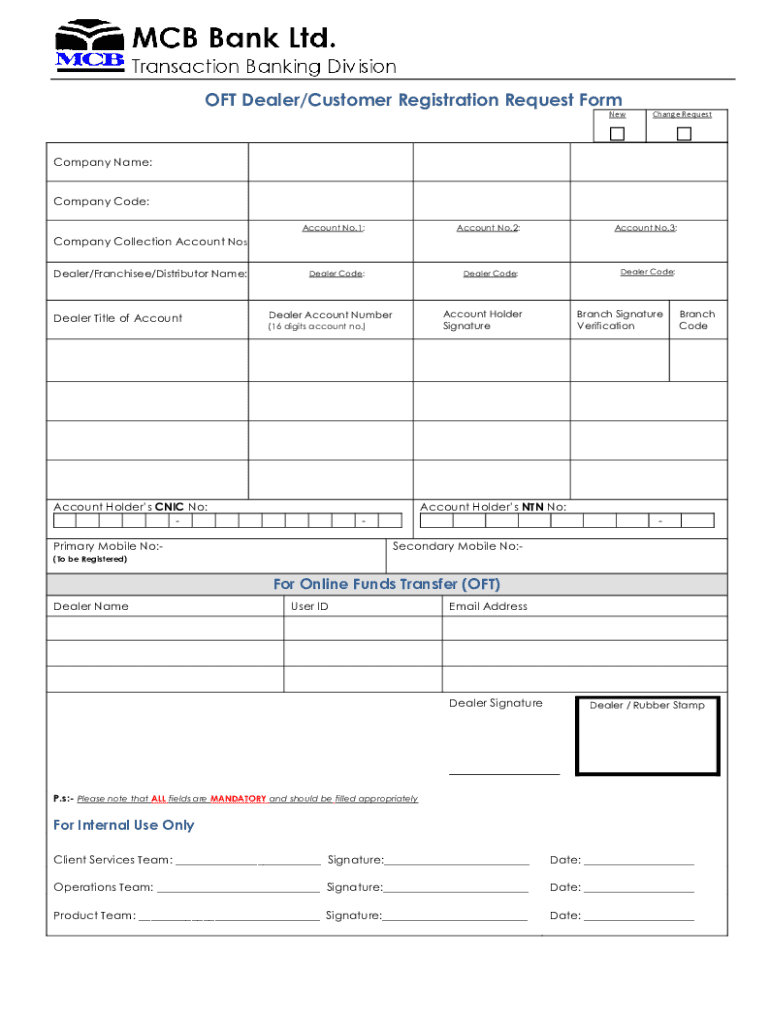 Get the free OFT Dealer/Customer Registration Request Form - MCB Bank