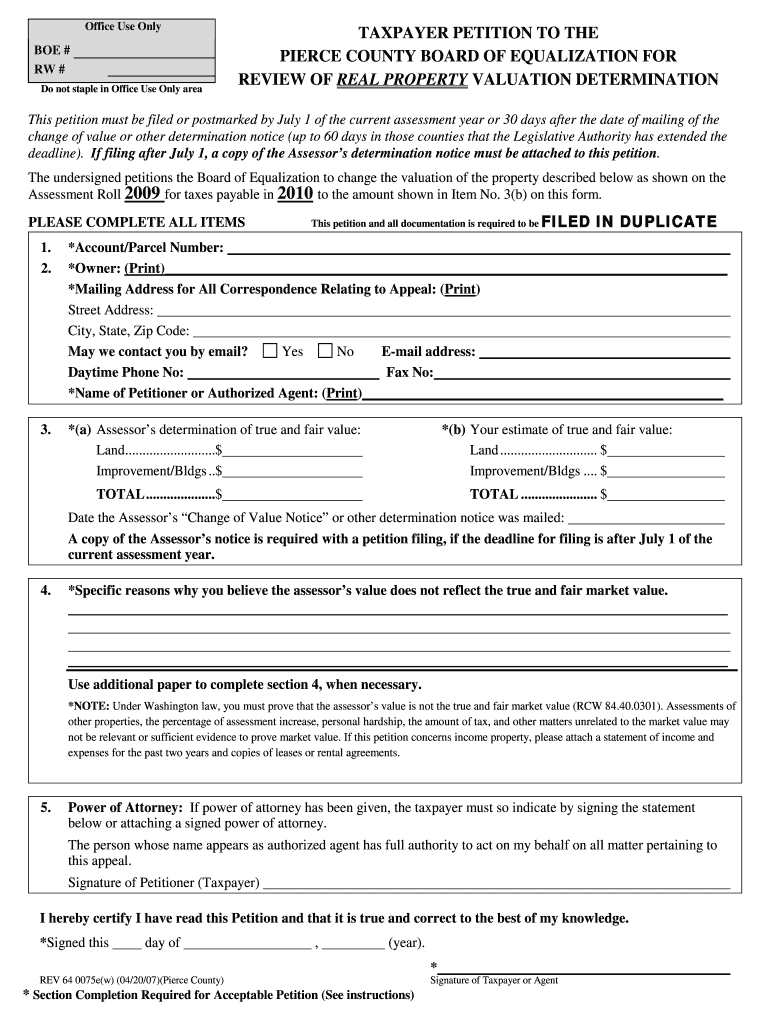 RESIDENTIAL and PERSONAL PROPERTY INSTRUCTIONS Petition Filing Instructions and Board of Equalization Requirements FOR A SUCCESSFUL APPEAL Please thoroughly read all information provided, particularly