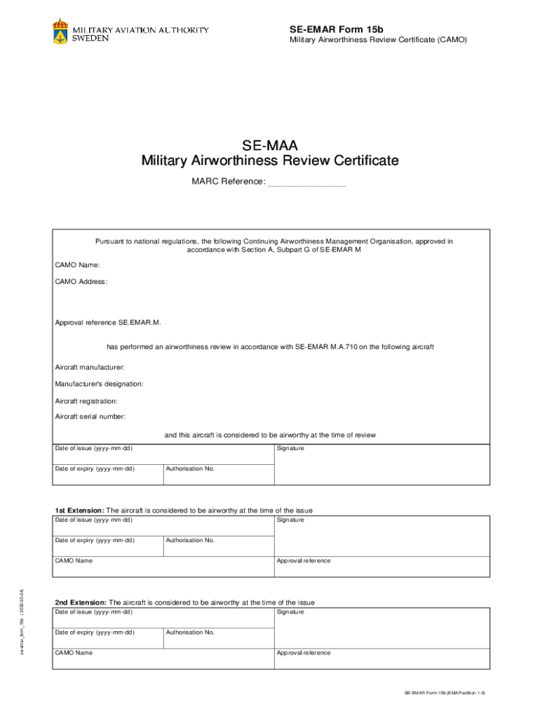 Get the free SE-EMAR Form 15b - Military Airworthiness Review Certificate (CAMO)