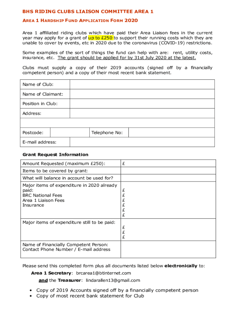 AREA 1 HARDSHIP FUND APPLICATION FORM 2020
