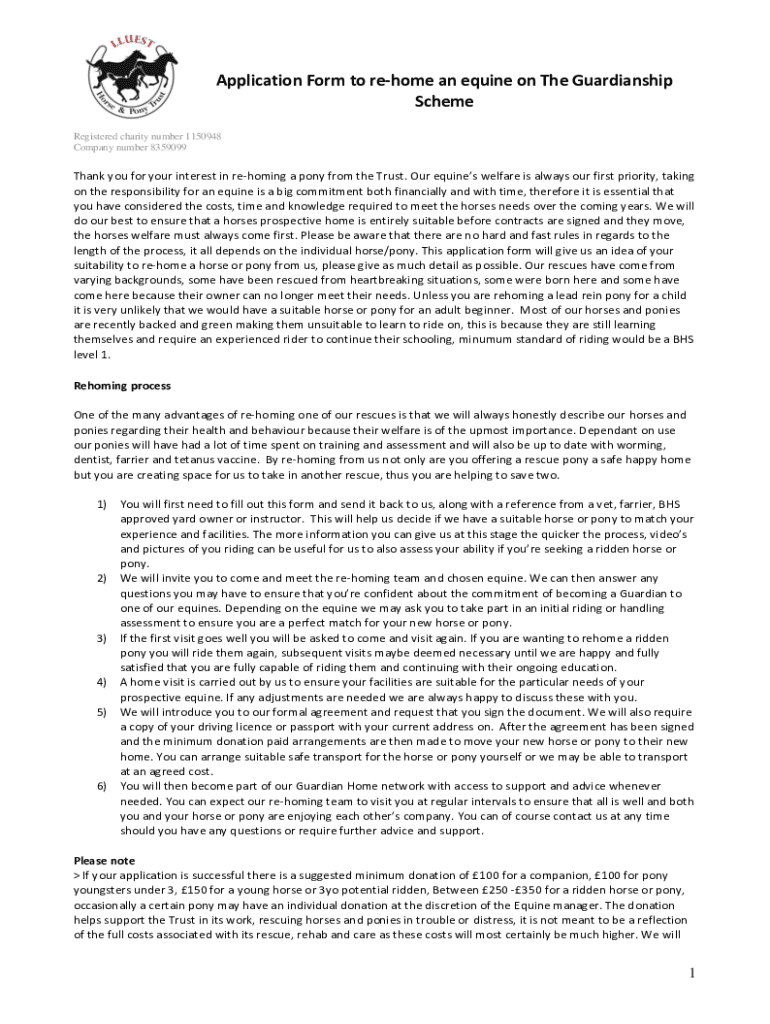 Get the free Application Form to re-home an equine on The Guardianship Scheme