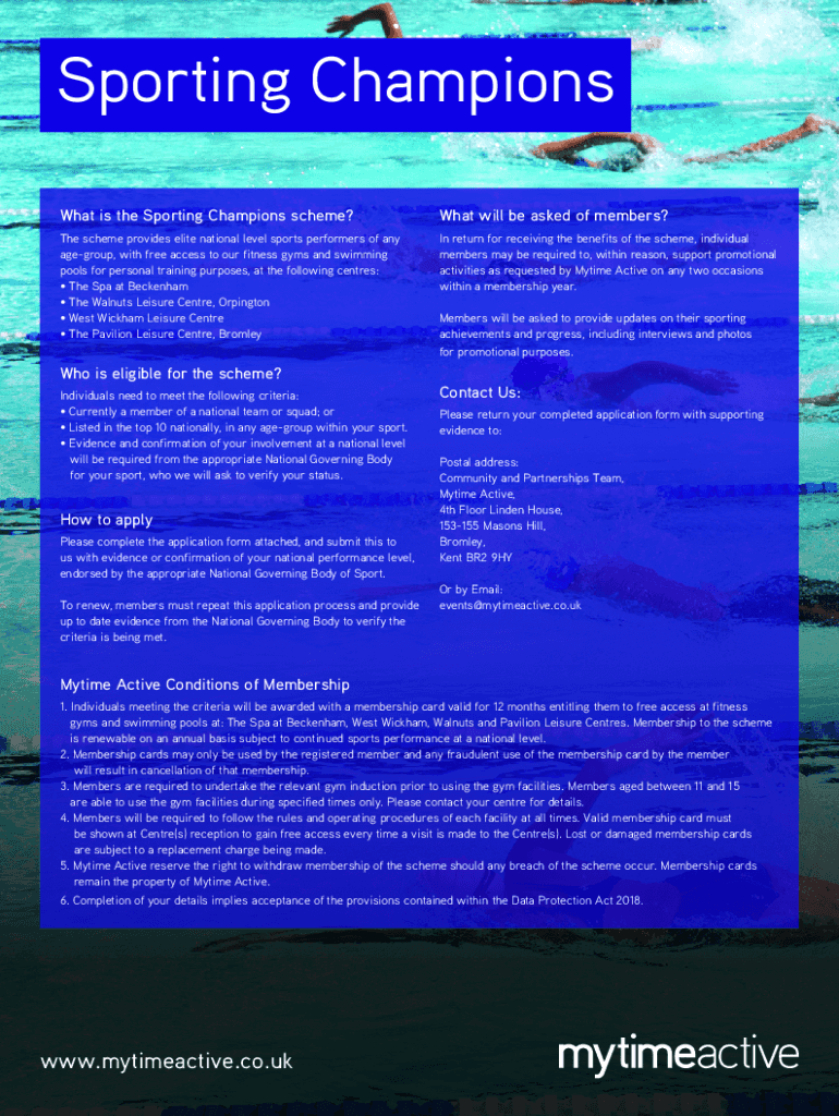 Sporting Champions What is the Sporting Champions scheme? What will be asked of members? The scheme provides elite national level sports performers of any age group, with free access to our fitness