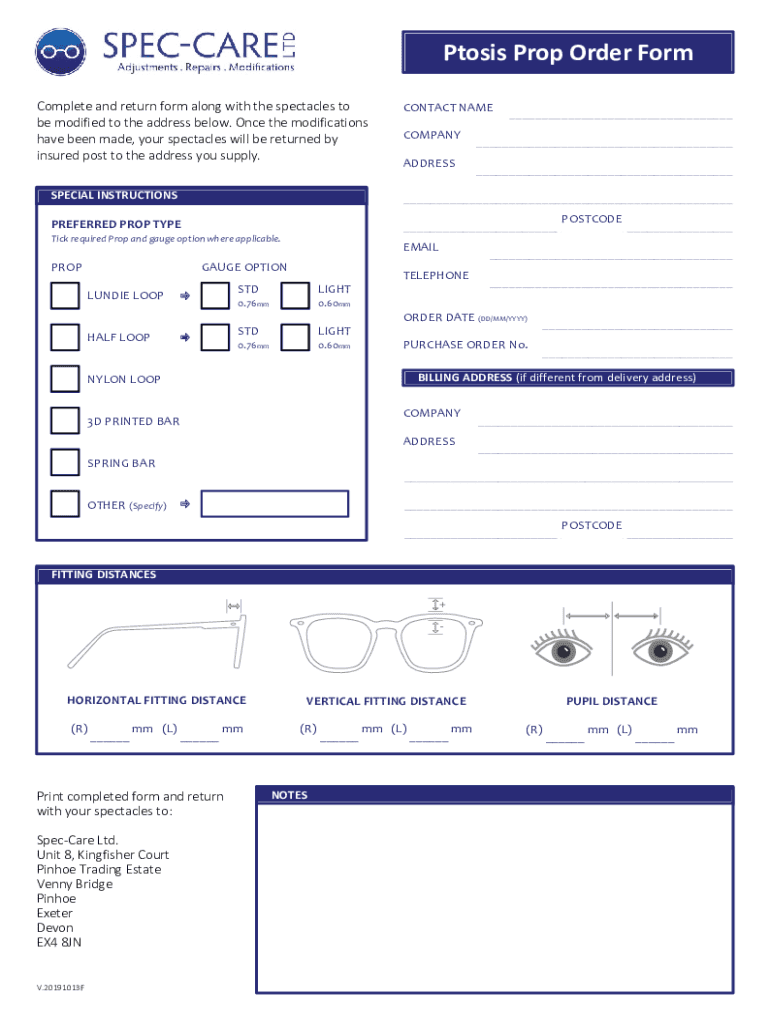 Posts Prop Order Form Complete and return form along with the spectacles to be modified to the address below. Once the modifications have been made, your spectacles will be returned by insured post