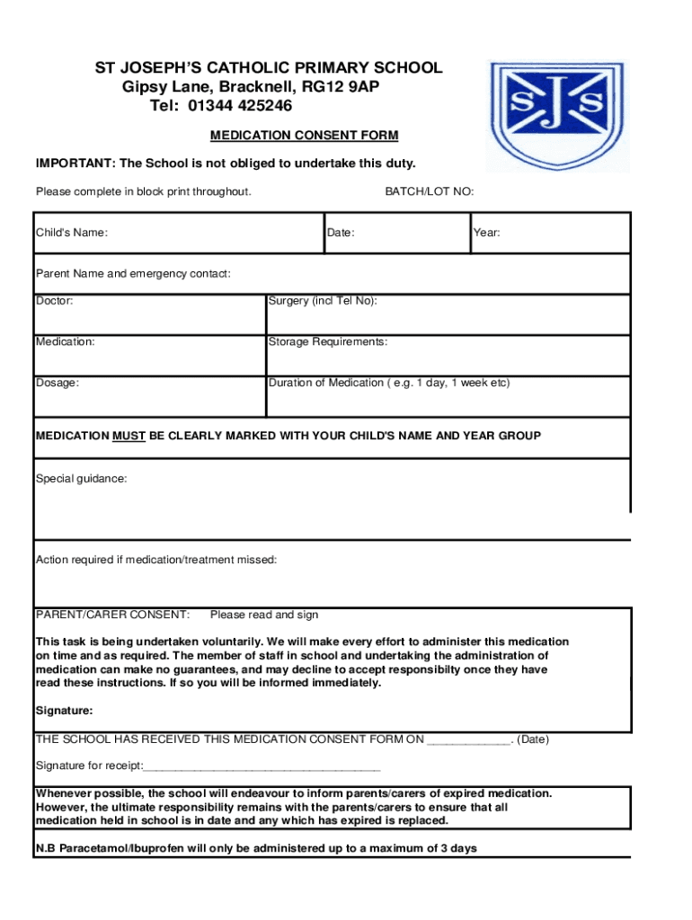 St. Joseph's Catholic Primary forms typically require information such as student's name, date of birth, address, emergency contacts, medical information, and any relevant permissions.