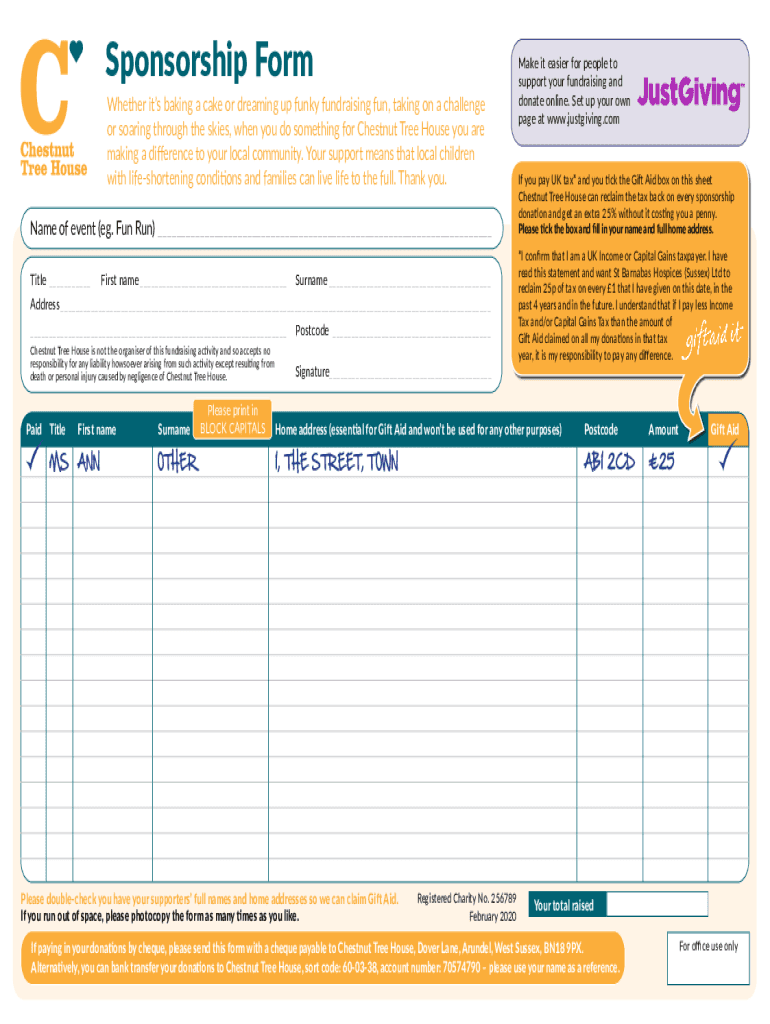 Sponsorship FormWhether its baking a cake or dreaming up funky fundraising fun, taking on a challenge or soaring through the skies, when you do something for Chestnut Tree House you are making a difference