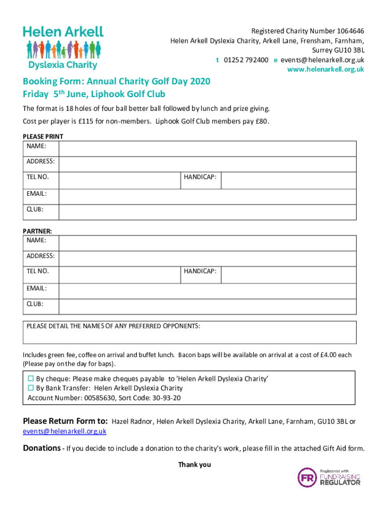 Get the free t e www.helenarkell.org.uk Booking Form: Annual Charity Golf ...