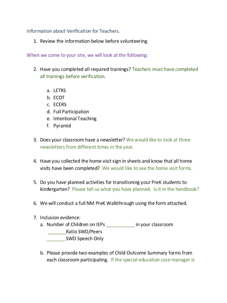 Get the free Information about Verification for teachers - one page resource
