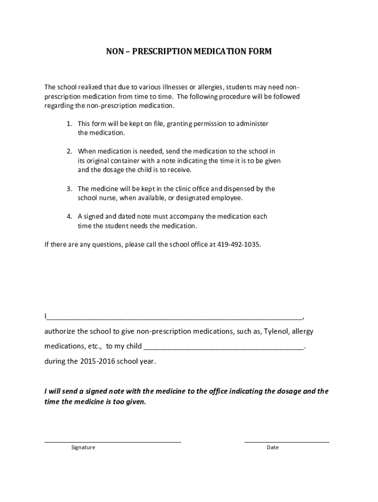 Get the free NON PRESCRIPTION MEDICATION FORM - Buckeye Central High School