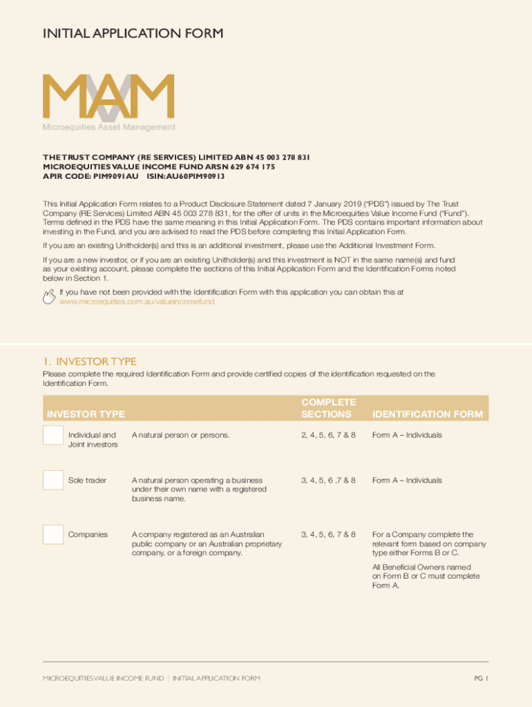 Get the free INITIAL APPLICATION FORM - microequities.com.au