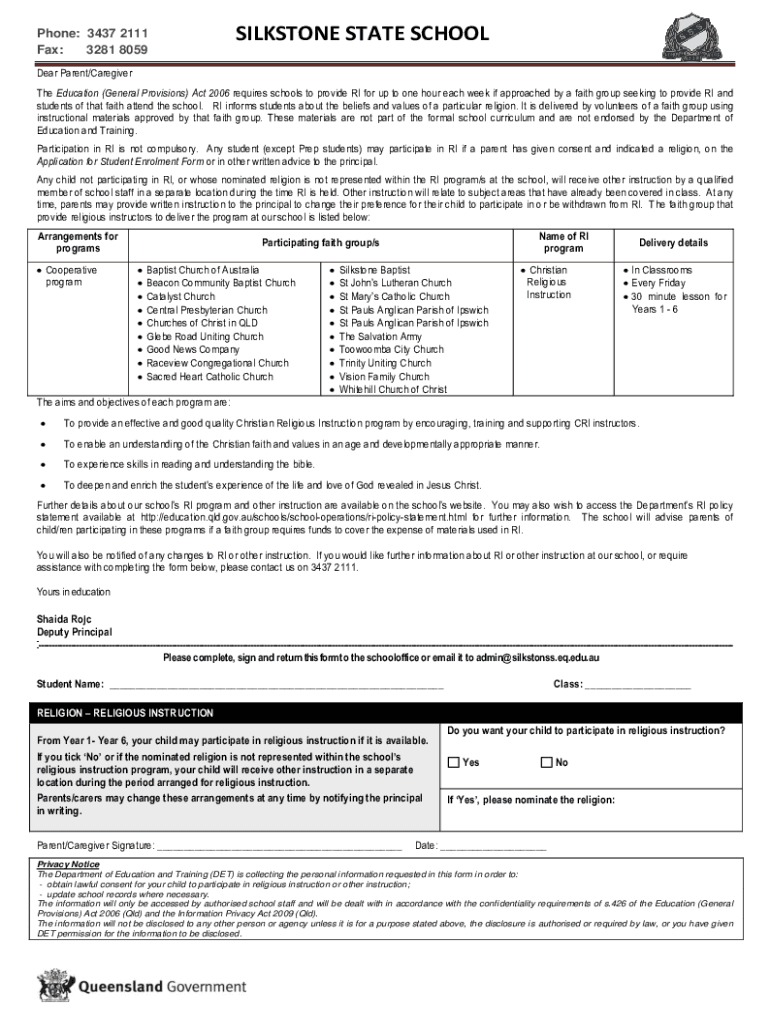 The Education (General Provisions) Act 2006 requires schools to provide RI for up to one hour each