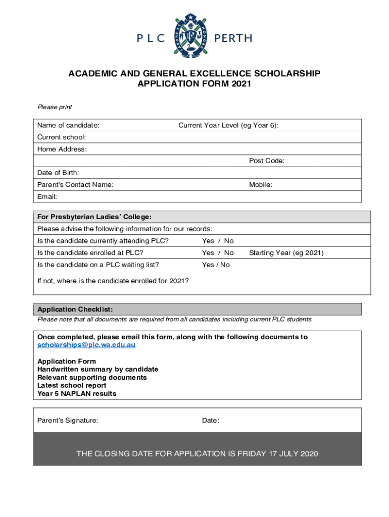 Please printable of candidate:Current Year Level (e.g. Year 6):Current school: