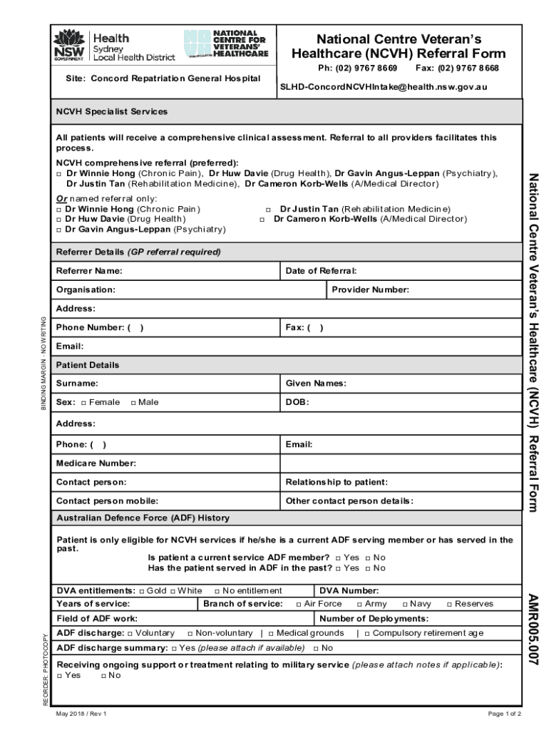 Get the free National Centre Veteran's Healthcare (NCVH) Referral Form