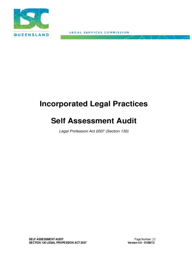 Incorporated Legal Practices Self Assessment Audit Legal Profession Act 2007 (Section 130)SELF ASSESSMENT AUDIT SECTION 130 LEGAL PROFESSION ACT 2007Page Number: 1 Version 4.0 01/06/12INTRODUCTION