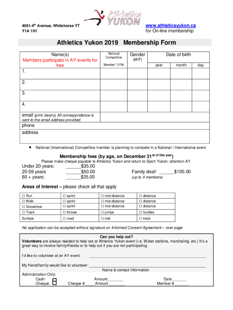 Fill out your athletics yukon 2019 membership online with pdfFiller!