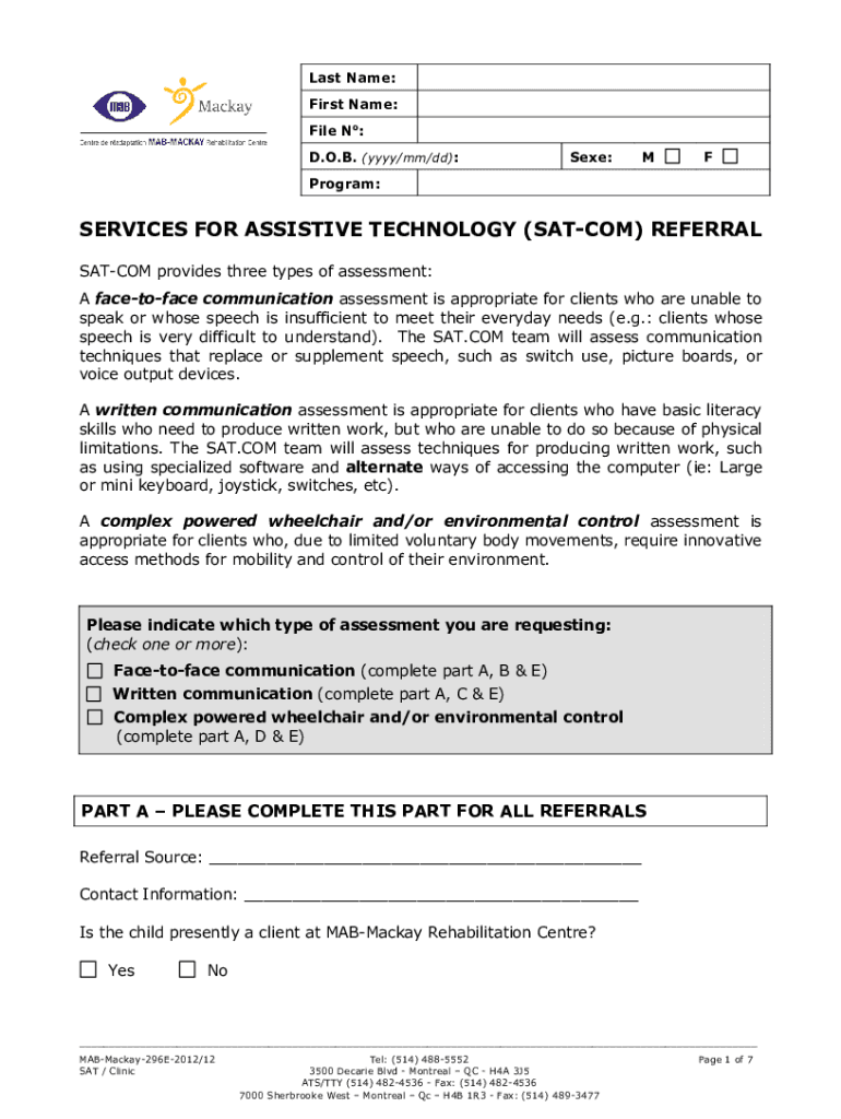 D.O.B. (YYY/mm/dd):See:Program:SERVICES FOR ASSISTIVE TECHNOLOGY (SITCOM) REFERRAL