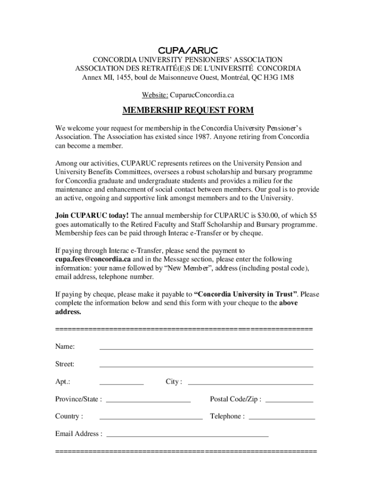 Get the free PDF CUPA membership request form - Concordia University Pensioner's ...