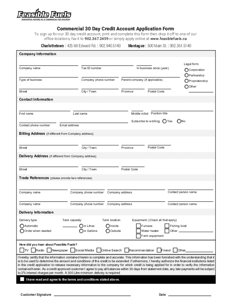 Clear Noncommercial 30 Day Credit Account Application Form sign up for our 30-day credit account, print and complete this form then drop it off to one of our office locations, fax it to 902.367.2459