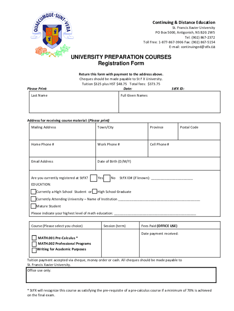 Continuing & Distance Education St. Francis Xavier University PO Box 5000, Antagonist, NS B2G 2W5 Tel: (902) 8672372 Toll Free: 18778673906 Fax: (902) 8675154 Email: continuinged SFX.university PREPARATION