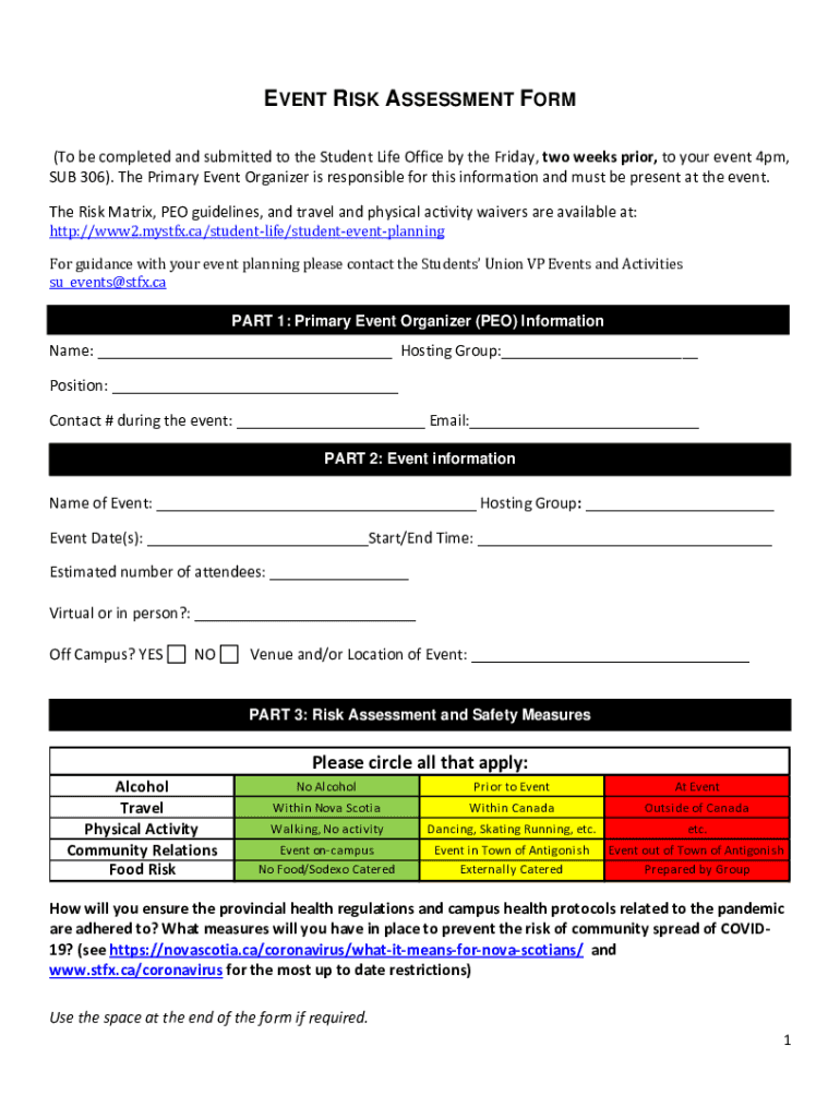 (To be completed and submitted to the Student Life Office by the Friday, two weeks prior, to your event 4pm,