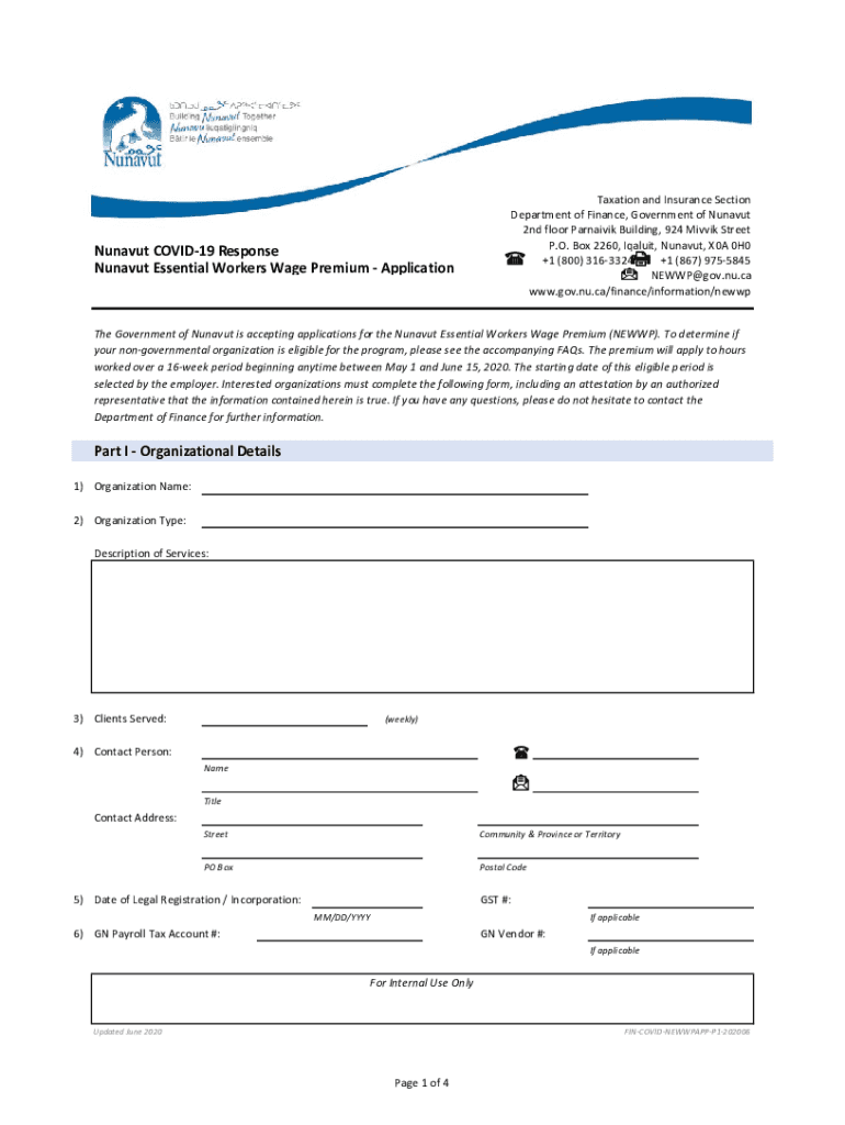 Get the free Nunavut Essential Workers Wage PremiumGovernment of NunavutNunavut Essential Workers...