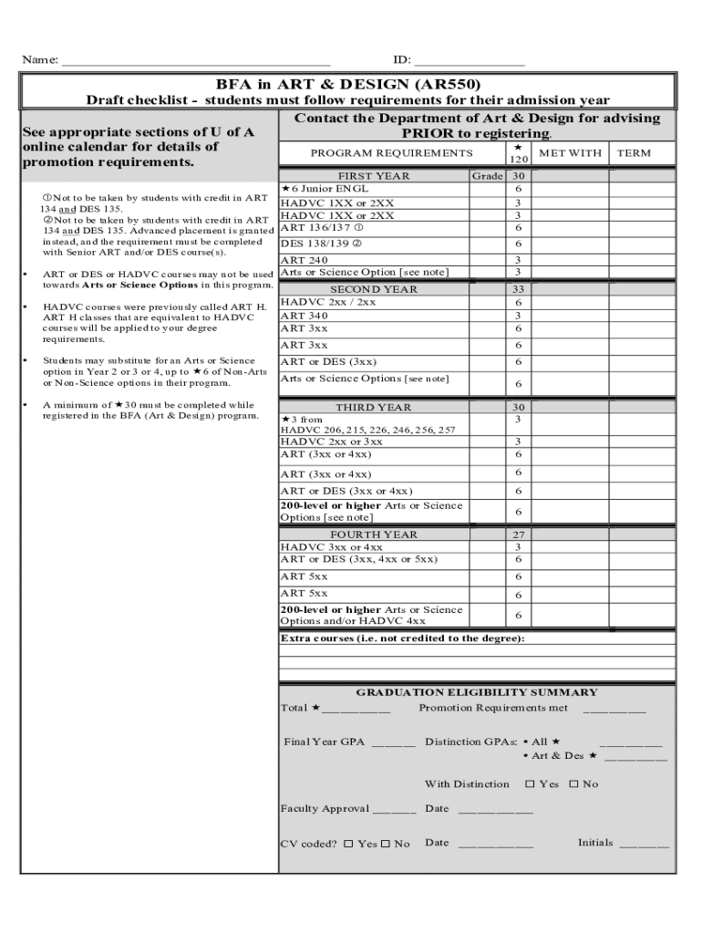 Get the free BFA in ART & DESIGN (AR550) Draft checklist - students must ...