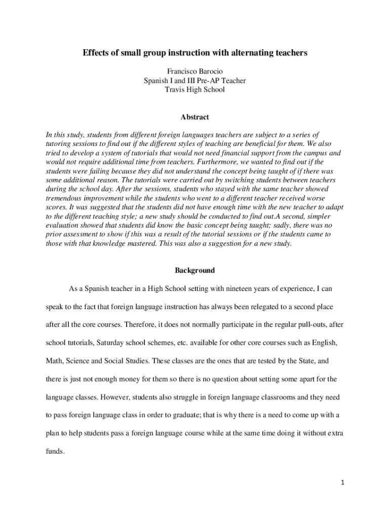 Get the free Benefits of small group instruction with alternated ... - Fort Bend ISD